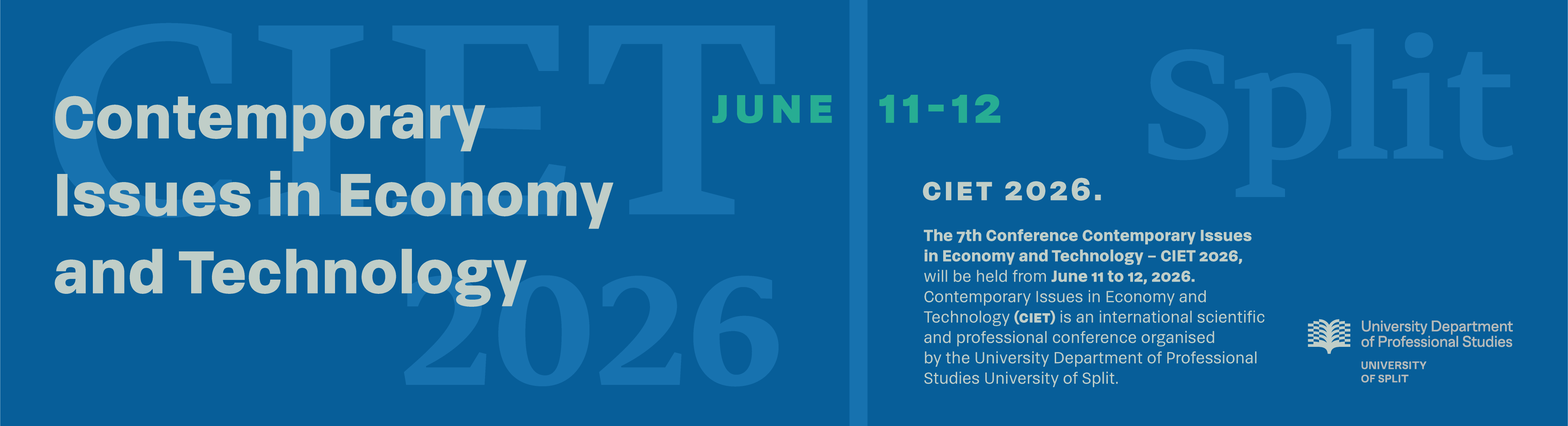 The 7th conference Contemporary Issues in Economy and Technology – CIET 2026 will be held from June 11 to 12, 2026 in Split.